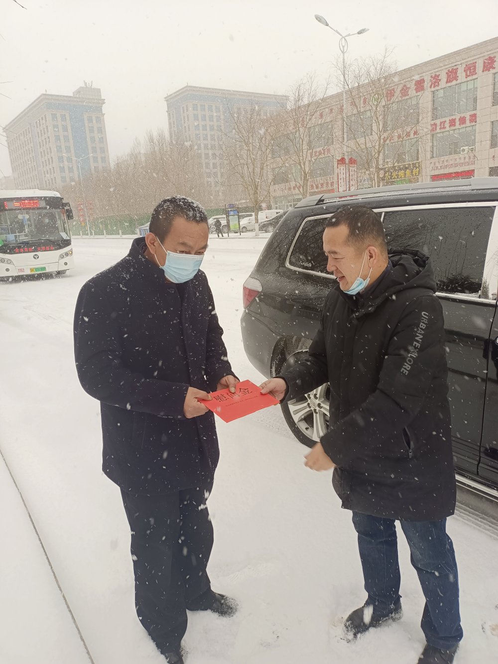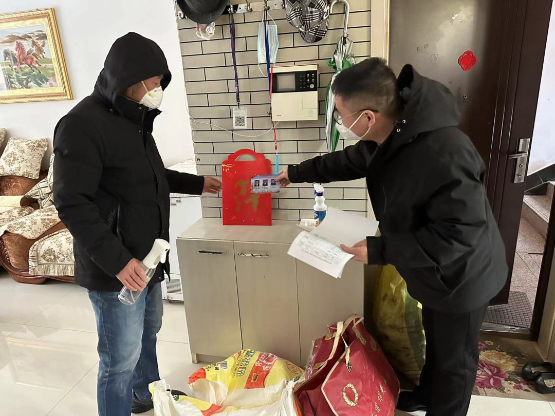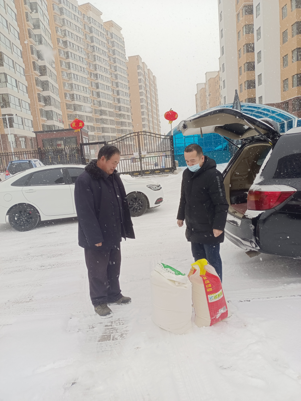 屋外大雪纷飞,屋内关怀情深。每到一户,志愿小分队详细了解了困难群众家中生活情况,防寒物资是否充足,嘱咐他们要注意天气变化,保重身体,并给他们送去了慰问金和米、面、棉被、消毒液、口罩等慰问物资共计2.3万元。慰问中,对于部分高龄老人、有基础疾病人员,结合疫情防控要求,为减少可能出现的交叉感染风险,志愿小分队联系其近亲属在户外送达了慰问物资。