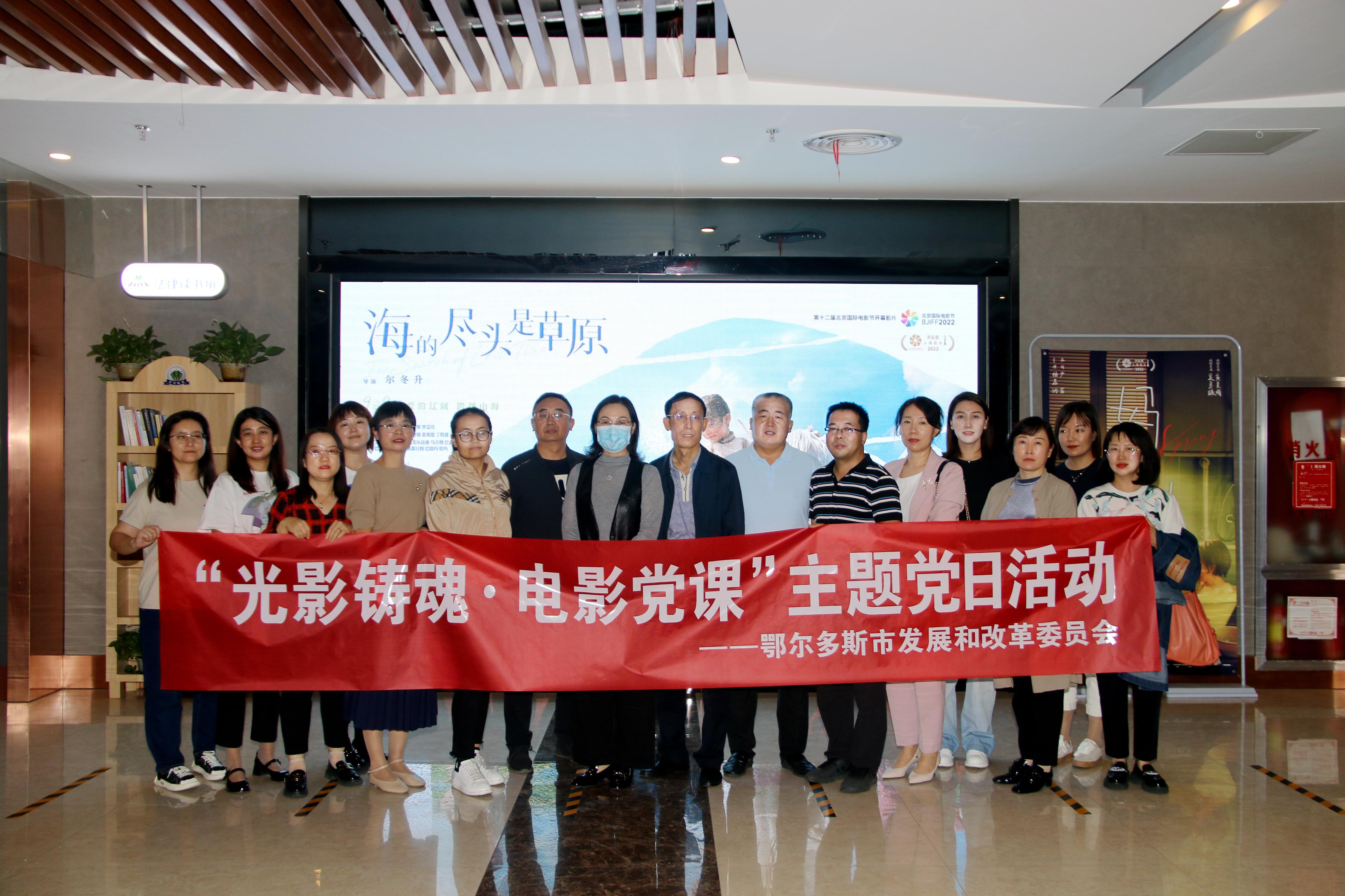 为庆祝中华人民共和国成立73周年,大力营造爱党爱国爱社会主义的浓厚社会氛围,进一步激发全委干部职工将家国情怀、民族团结之情转化为努力工作、为民服务的动力,近日,市发改委组织干部职工集中观看影片《海的尽头是草原》,开展“光影铸魂·电影党课”主题党日活动。