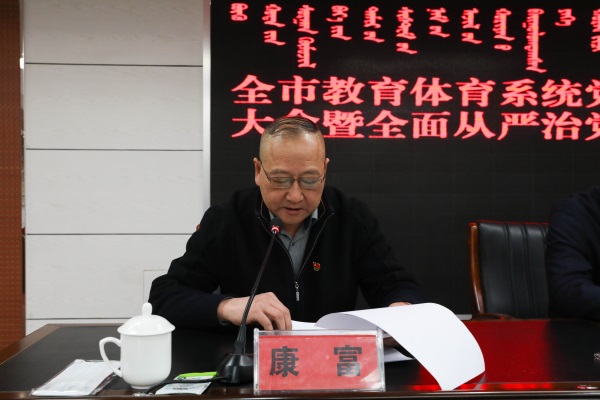 会议强调,要旗帜鲜明加强党的政治建设,全面夯实思想政治基础。强化思想引领,坚决纠偏正向,聚焦政治监督,把政治标准和政治要求贯彻落实到人才培养全过程、学校教育各学段,确保教体系统始终成为坚持党的全面领导的坚强阵地。要坚定不移加强党的思想建设,增强事业发展理论武装。强化党的创新理论武装,扎实开展党史学习教育,切实做好学校思想政治工作,使教育体育系统成为学习研究宣传和贯彻践行新思想的坚强阵地。要持之以恒加强党的组织建设,严肃规范党内政治生活。全面加强基层党组织建设,建立健全“五个一”工作机制,强化中小学校党组织的核心作用,贯彻好民主集中制基本原则,把党的领导贯穿办学治校、教书育人全过程。要常抓不懈加强党的纪律建设,坚决守住党的纪律底线。用严明的纪律管党治党,持续推进警示教育,扎实开展专项整治,以永远在路上的坚韧和执着把反腐败斗争推向纵深。要驰而不息加强党的作风建设,坚决整治“四风”问题。持续抓好“四风”纠治,强化日常监督和专项检查,坚决整治师生关注问题,做到党风政风齐抓、校风学风并进、教风师风协同。要从严从实加强党的制度建设,加快推进制度优势转化为治理效能。健全完善制度体系建设,加强制度执行的监督,党员领导干部带头做制度执行的表率,进一步形成靠制度管人、管事、管财、管物的长效机制。要深刻认识意识形态工作的极端重要性,切实履行好学校意识形态工作责任。压紧压实各级党组织意识形态工作责任制,持续强化中小学校意识形态阵地建设和审核把关,切实规范中小学校园文化建设,着力提升全市教师队伍思想政治素质,坚决维护好政治安全和意识形态领域安全。