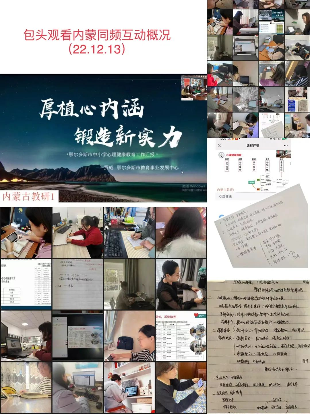 教研共联动,同心促提升。12月13日,内蒙古自治区心理健康学科教研活动如期在云端开启。自治区教研室刘春建老师主持研修活动,我市四位汇报人分别从市级、旗区和学校三个层面,围绕教育教学研究的相关内容作典型发言。全区12个盟市的专兼职心理健康教育教师参加了活动。