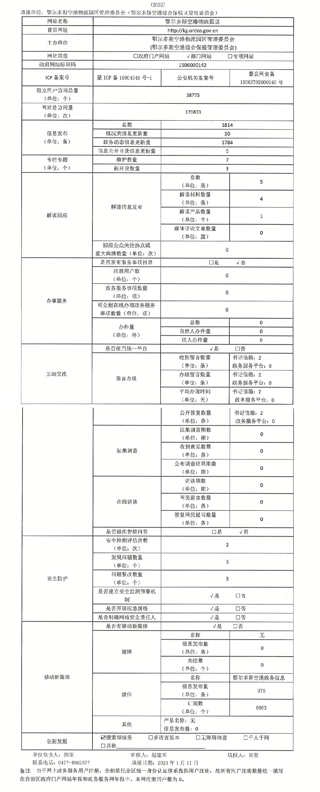 鄂尔多斯空港物流园区2022年网站工作年度报表