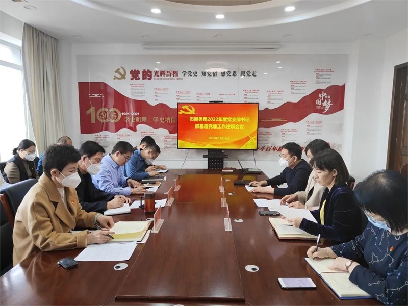 2023年1月31日,市商务局召开2022年度党支部书记抓基层党建工作述职会,全体在家党员参加会议。