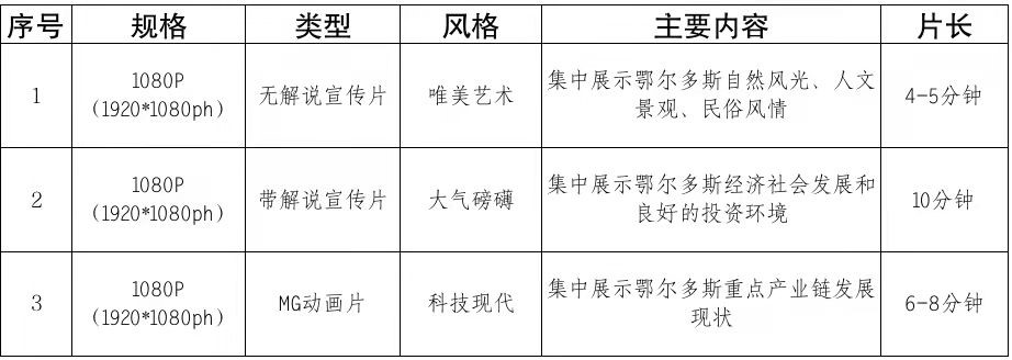 (3)宣传片要求参数 :
