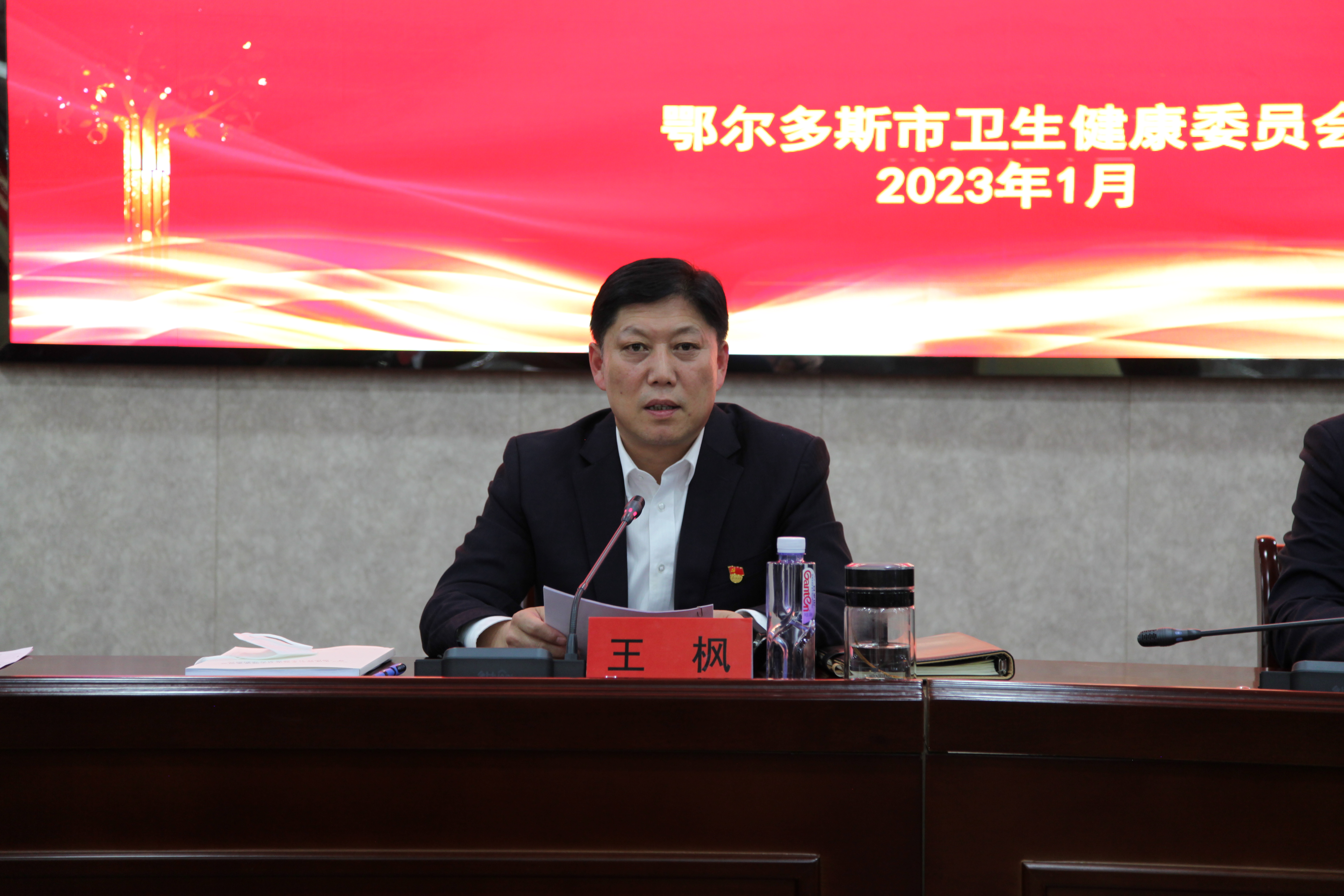 会议最后,王枫代表市卫生健康委党组向干部职工表示衷心的感谢,肯定了市卫生健康系统一年以来在疫情防控、医疗救治、公共卫生体系建设、健康鄂尔多斯建设等方面的各项成绩,并对新形势、新任务下卫生健康领域的薄弱环节提出10个方面的要求。一是保持定力,有力有序做好疫情防控。二是倍增耐力,牢牢守住安全发展底线。三是凝聚合力,持续推进健康鄂尔多斯建设。四是开足马力,全面提升公共卫生服务能力。五是精准发力,着力构建高水平医疗服务体系。六是激发活力,持续深化医药卫生体制改革。七是深挖潜力,加快推进中(蒙)医药传承创新发展。八是尽心竭力,更好满足“一老一小”等重点人群需求。九是增强动力,大力推进卫生重点学科和人才队伍建设。十是拿出魄力,坚定不移推进全面从严治党。
