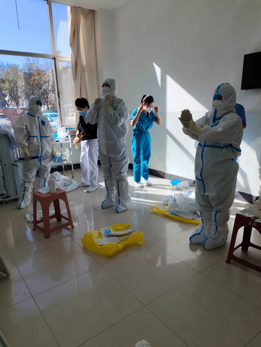 疫情就是命令,防控就是责任。为全面做好新冠肺炎疫情防控工作,东胜区卫健系统全体枕戈待旦。东胜区人民医院为进一步精准抗疫,提高护理人员疫情防控能力和自我防护意识,医院护理部分区域、分批次、分层次组织护理人员进行穿脱防护服、咽拭子采集、各项操作规范等内容的培训。
