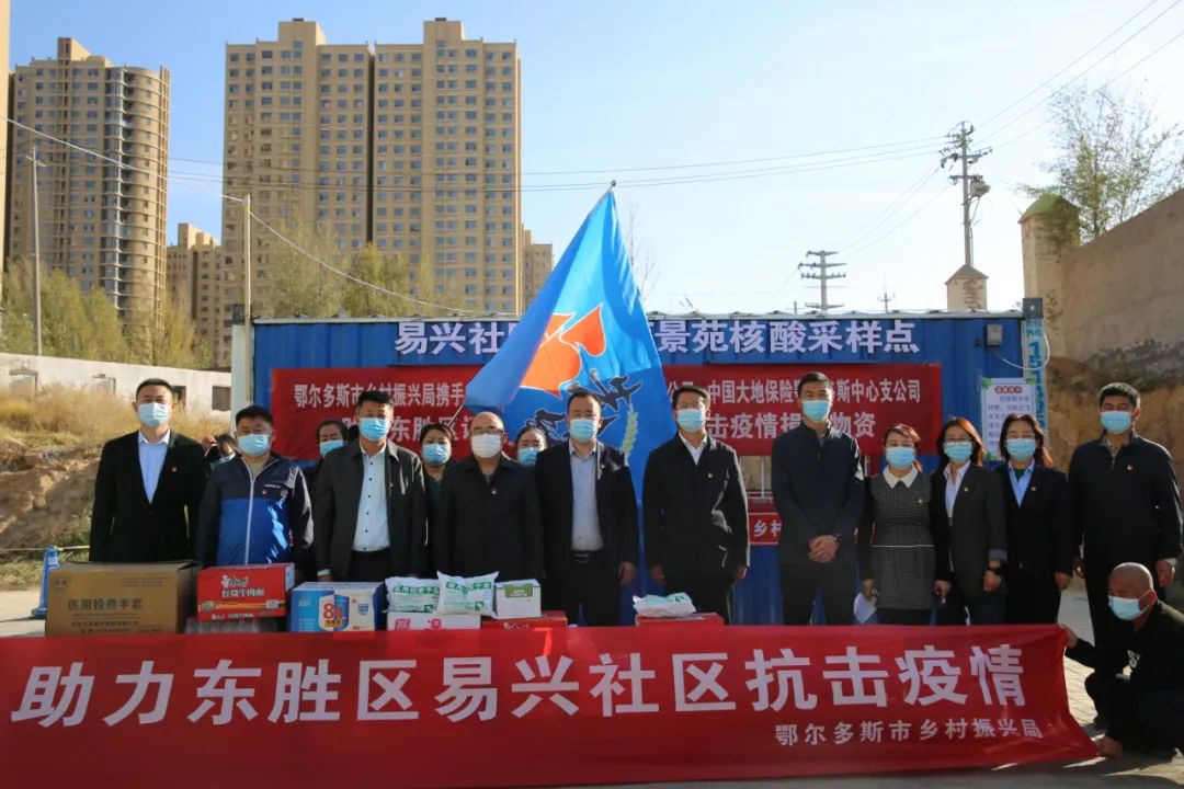 面对当前我市新冠肺炎疫情严峻形势,市乡村振兴局党组、机关党委迅速行动,结合落实党员联系服务群众“六个一”工作机制,充分发挥党组织、党员以及包联共建“双进”的先锋模范带头作用和职能作用,积极组织动员全体党员干部践行在职党员“双进”活动,主动担当、履职尽责。主动协调对接中国太平洋财险鄂尔多斯中心支公司、中国大地保险鄂尔多斯中心支公司,全力支持包联共建、疫情防控工作,为东胜区易兴社区、伊金霍洛旗苏布尔嘎镇阿日雅布鲁村、木乎尔敖包嘎查捐赠核酸检测采样工作室、消毒液、口罩、防护服、方便面、矿泉水等抗疫物资和生活物资共计2万余元。