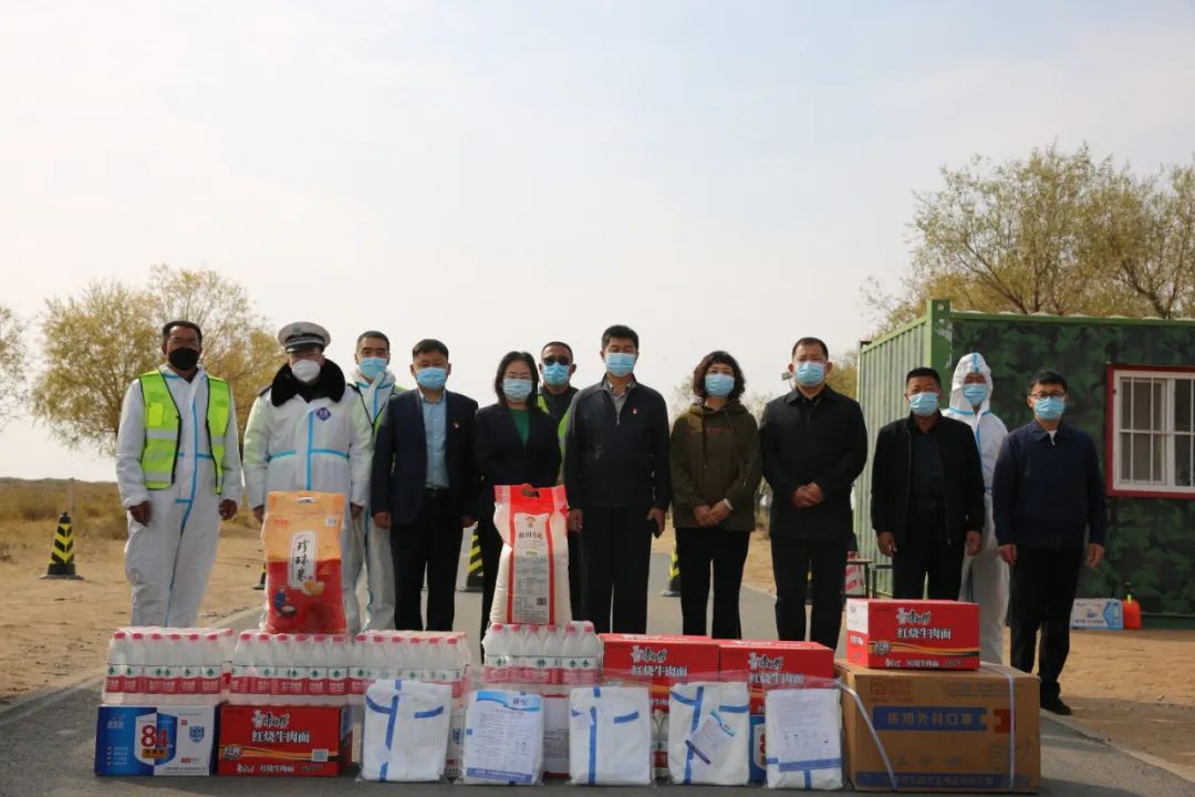 ▲为阿日雅布鲁村疫情防控堵卡点捐赠抗疫物资和生活物资。