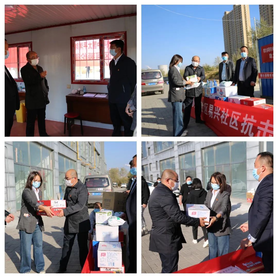 ▲为东胜去易兴社区捐赠抗疫物资和生活物资。