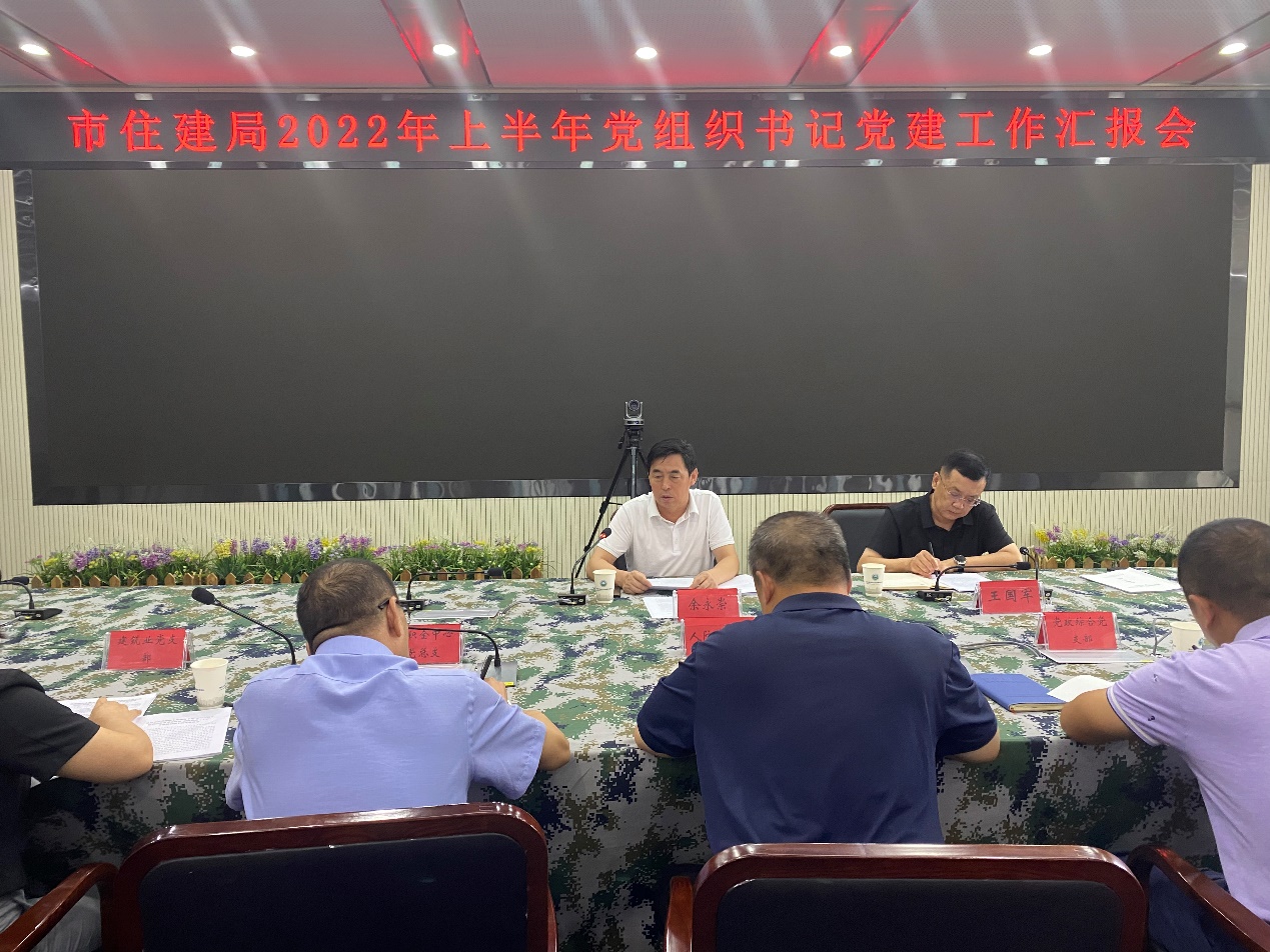 8月10日上午,市住建局召开2022年上半年党建工作汇报会,总结上半年党建工作,分析住建领域发展形势,安排部署下半年党建工作。市住建局党组书记、局长兼机关党委书记余永崇出席会议并讲话。会议听取了公积金中心党总支、各党支部2022年上半年党建工作取得的成绩和亮点,分析存在问题和解决思路,下半年党建工作思路。