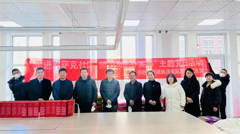 1月6日上午,综合行政执法支队联合党支部与伊金霍洛旗自然资源局到伊金霍洛旗札萨克社区开展“结对共建”帮扶及春节走访慰问活动。